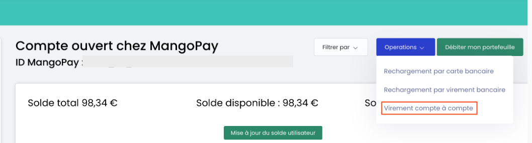 S’abonnerLes transferts de fonds ne sont possibles que via une assistance payante. Toutefois, si vous souhaitez transférer des fonds depuis le compte manager unique de la plateforme, vous disposez de la fonctionnalité "Virement compte à compte" dans les flux financiers de ce compte.